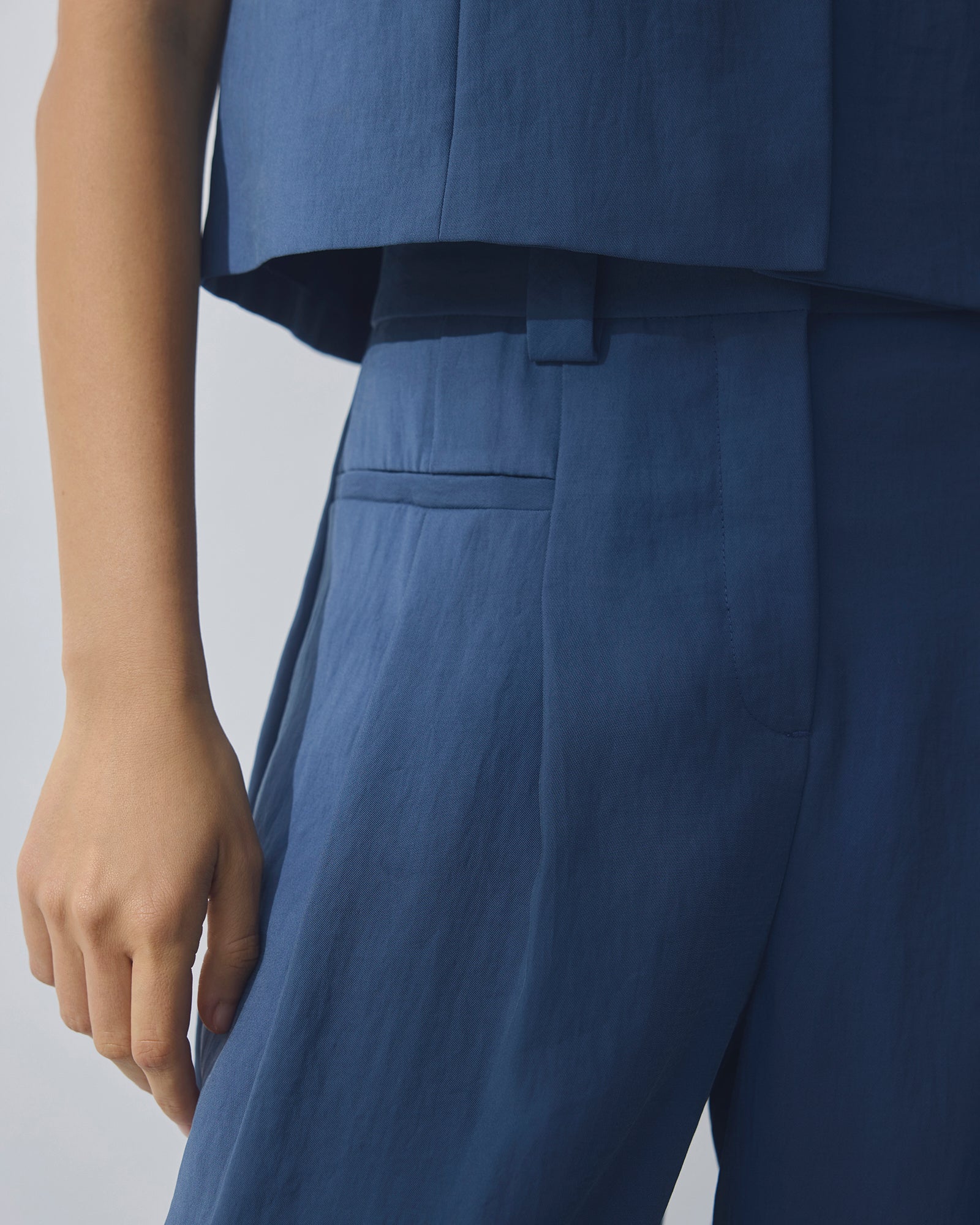 Deze broek heeft een elegant, wijdvallend silhouet met een hoge taille voor een moderne en verfijnde look. De lichte stof valt prachtig en zorgt voor comfortabel draagcomfort gedurende de hele dag. Met riemlussen en discrete zakken is de broek gemakkelijk te combineren voor zowel alledaags gebruik als formelere gelegenheden.