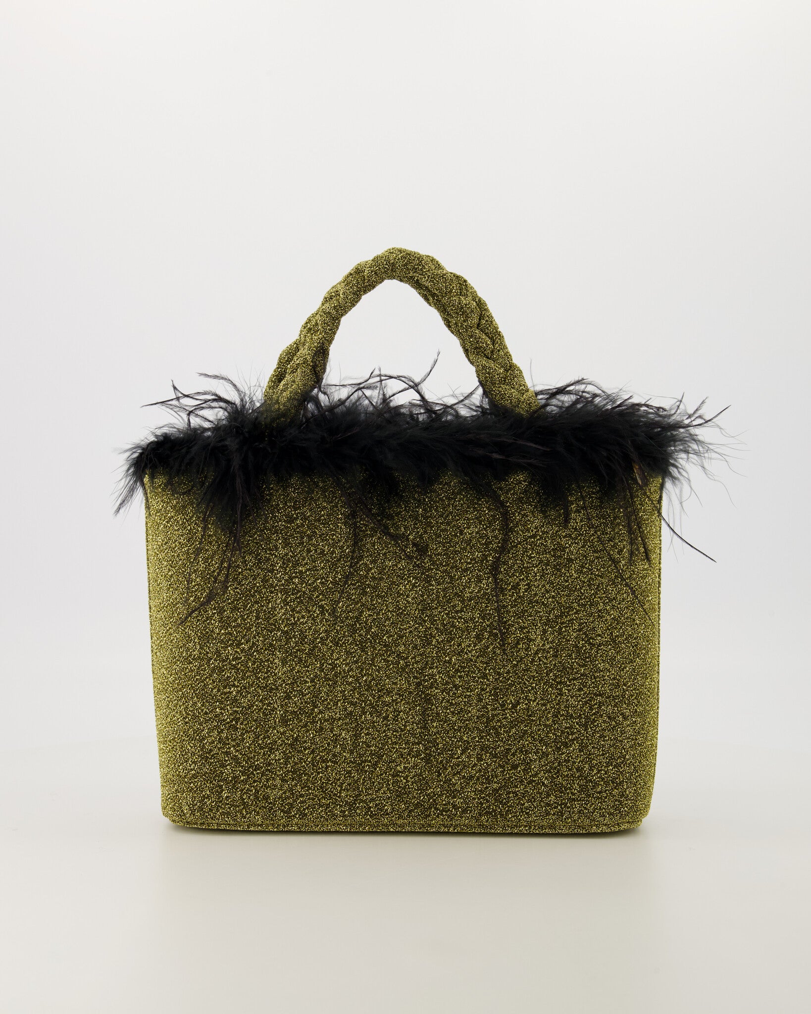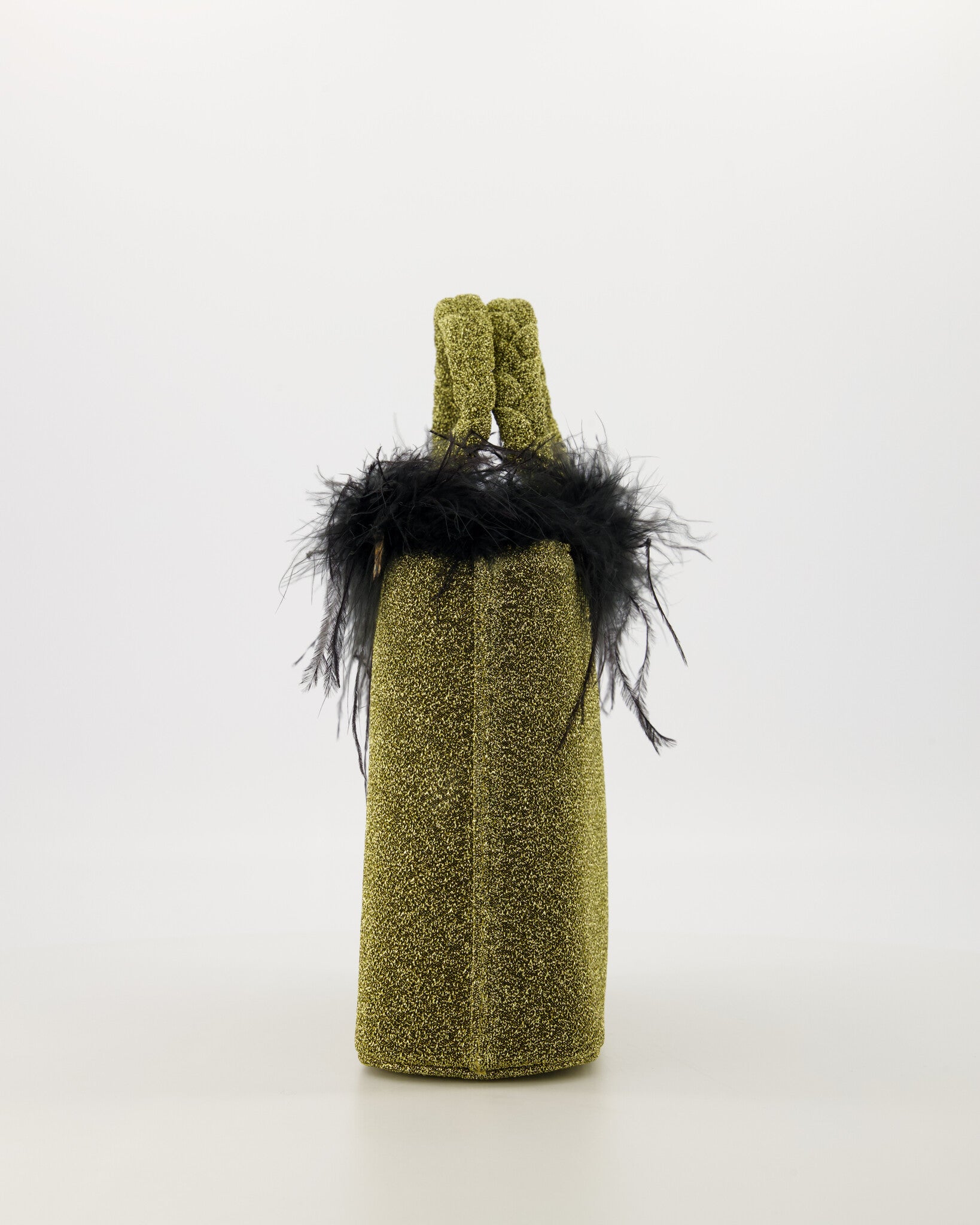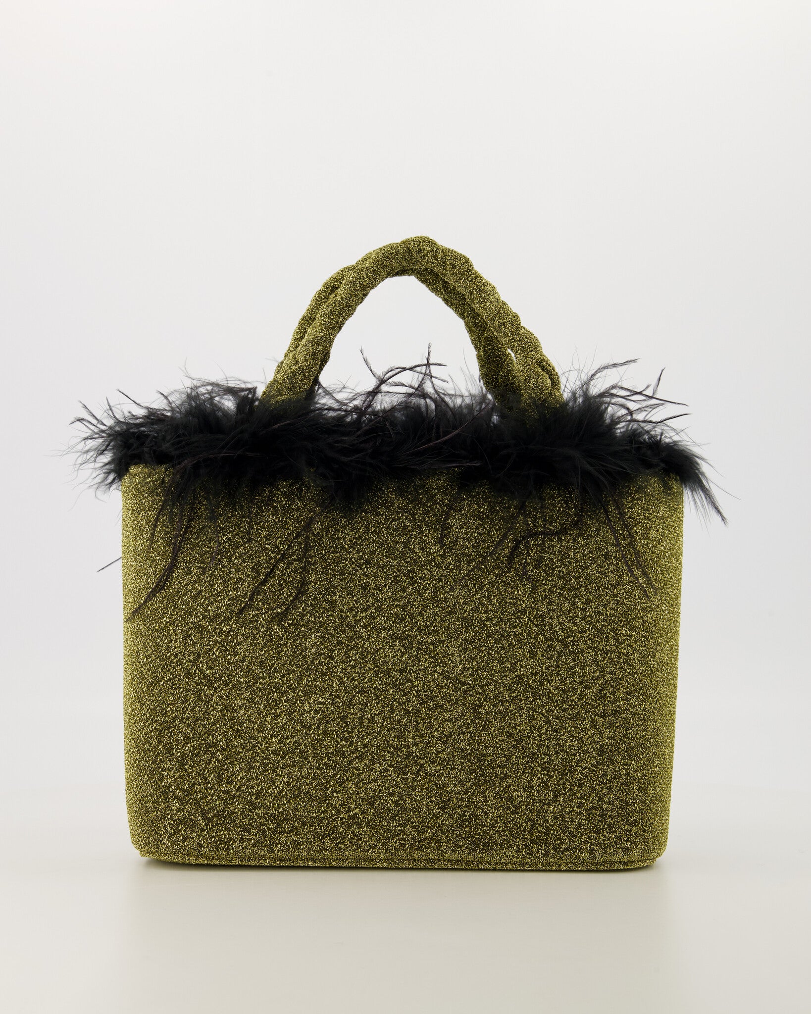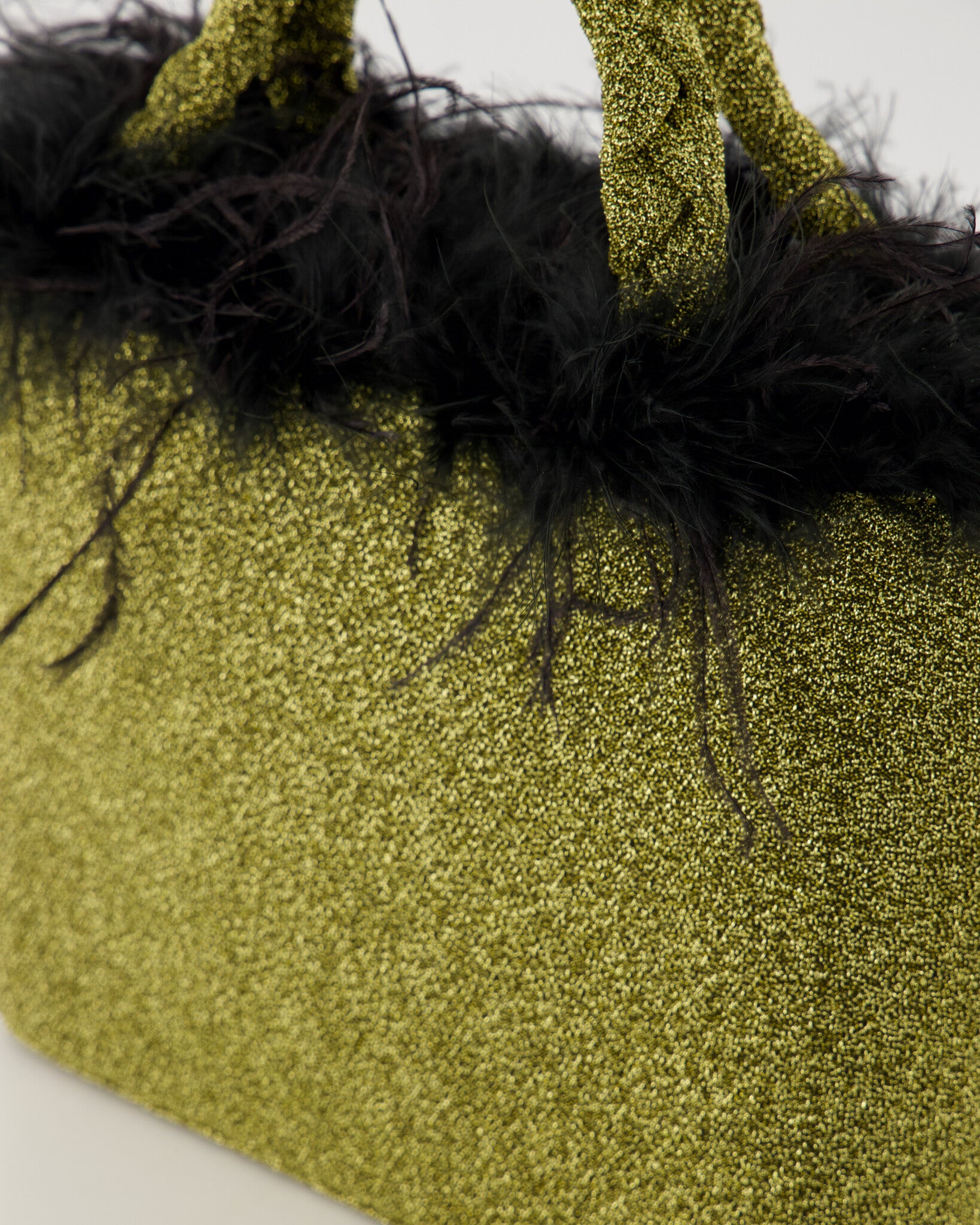 De Dolly is een stijlvolle handtas met een glinsterende goudkleurige afwerking en een speelse rand van zwarte veren. Ideaal voor feestelijke gelegenheden en avondjes uit. Compact design met stevige handvatten, perfect voor essentiële accessoires.