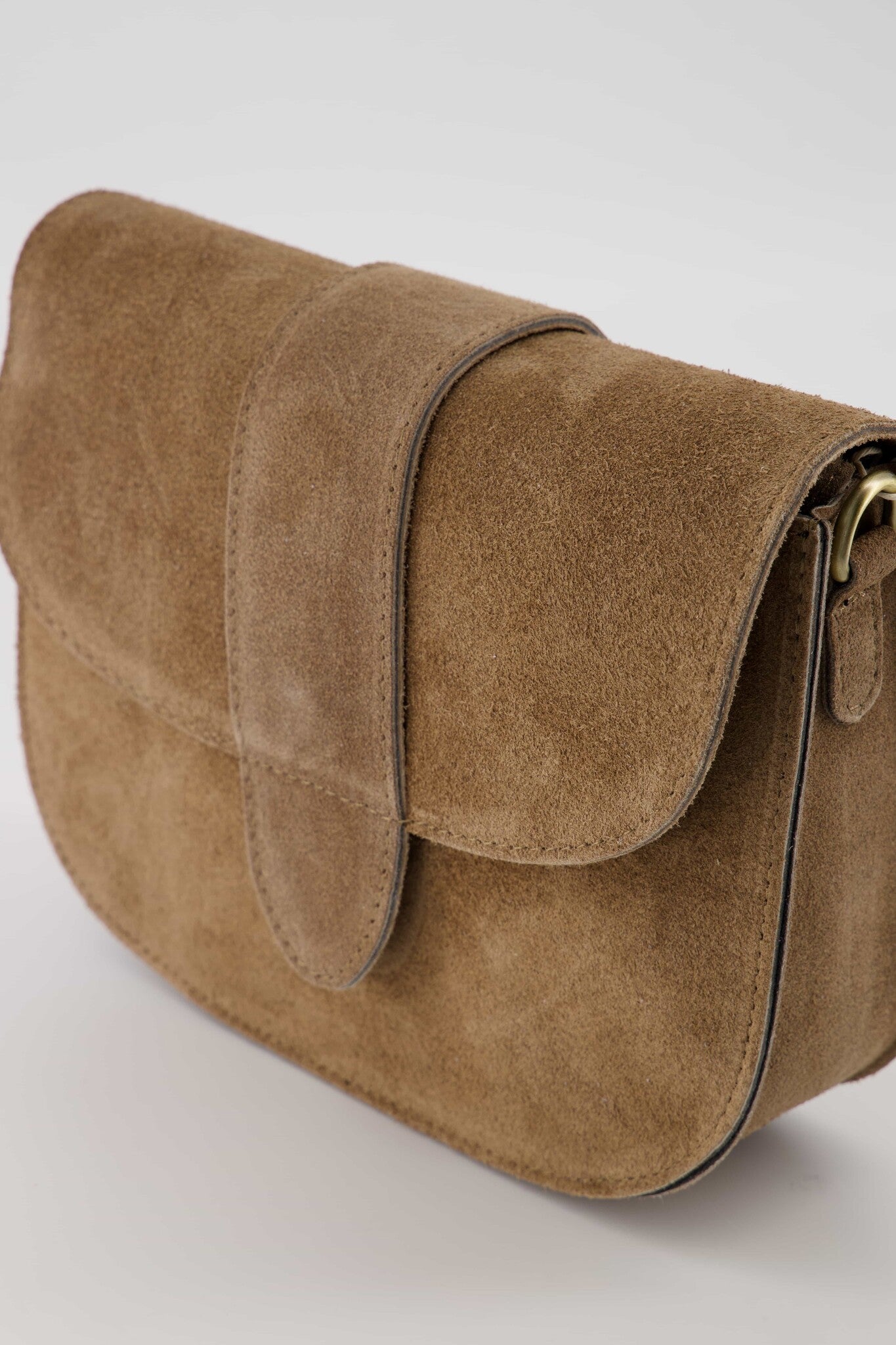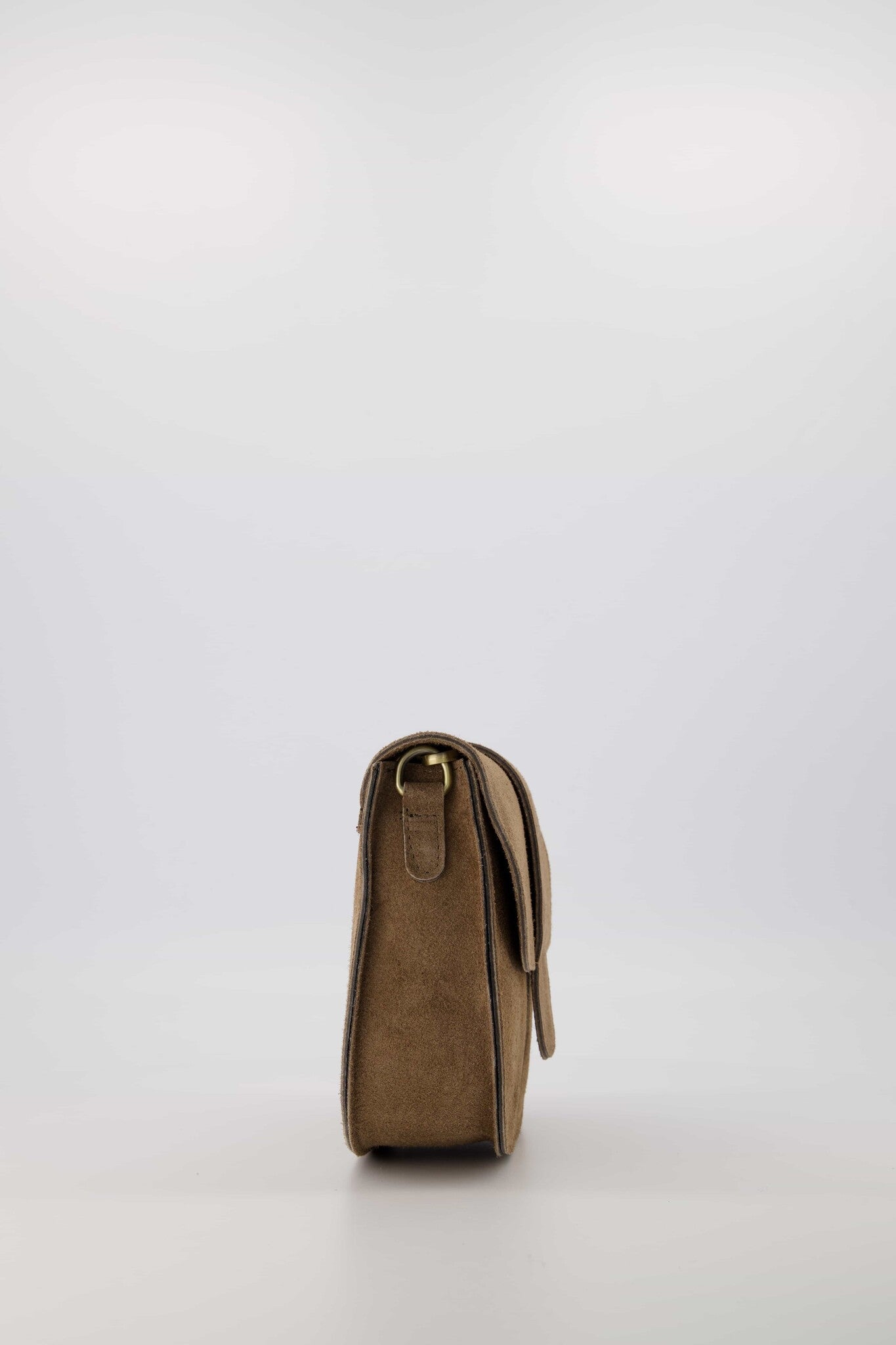 Maan is een suede leren crossbodytas met een afneembaar en verstelbaar hengsel. De tas heeft een binnenvak met aan de binnenzijde een steekvak.